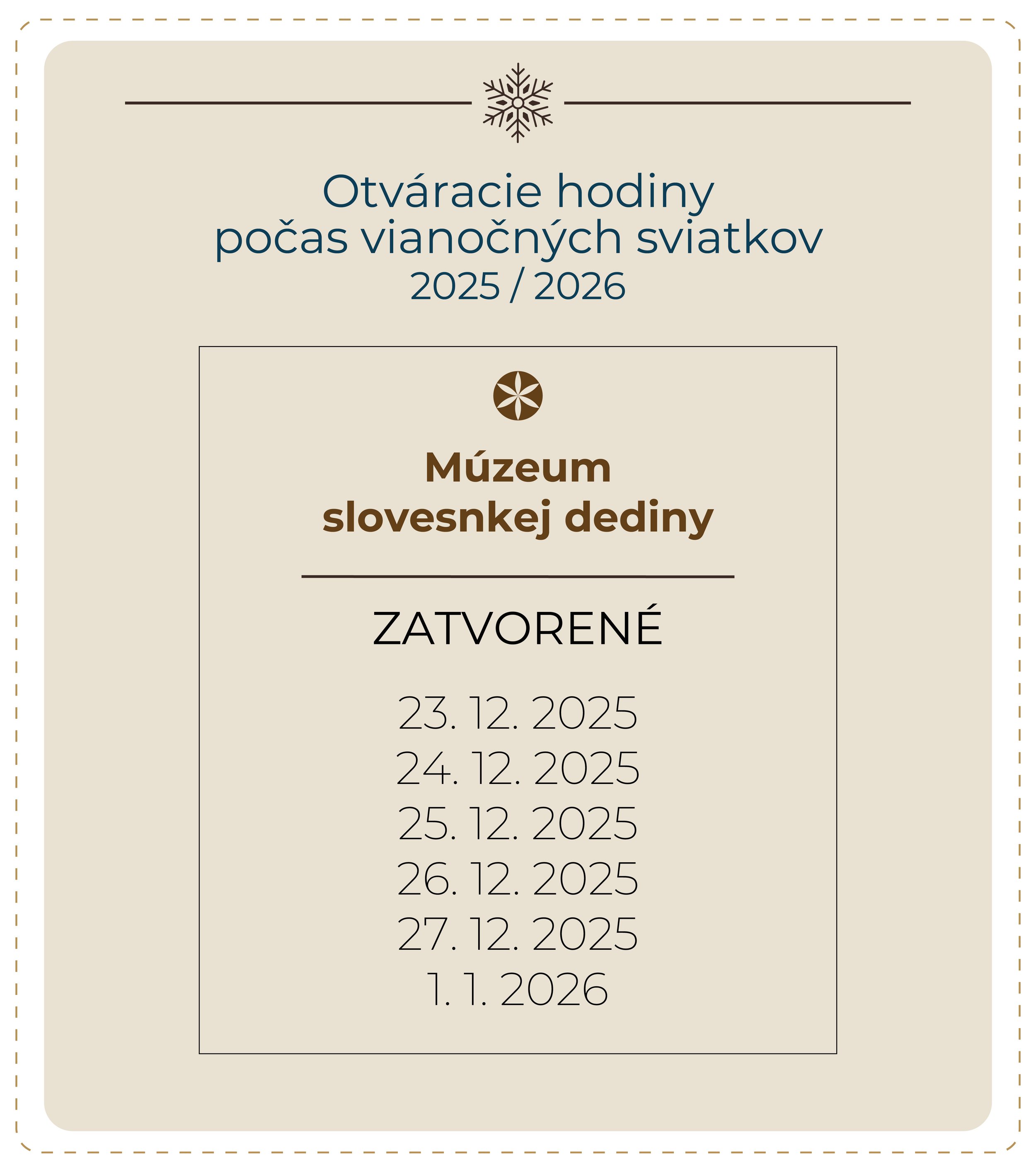 Celodenná vstupenka do dvoch múzeí SNM v Martine – platí v deň zakúpenia na vstup do dvoch vybraných múzeí SNM v Martine (Etnografické múzeum, Múzeum Andreja Kmeťa, Múzeum kultúry Čechov na Slovensku, Múzeum Martina Benku, Múzeum slovenskej dediny a Múzeum kultúry Rómov na Slovensku – vrátane podujatí v Múzeu slovenskej dediny).